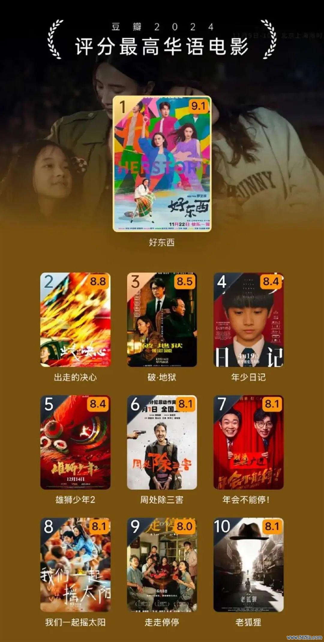 、马伊琍、宋佳等荣获2024最受怜惜演员,《好东西》《出走的决心》《破·地狱》等获2024评分最高华语电影。