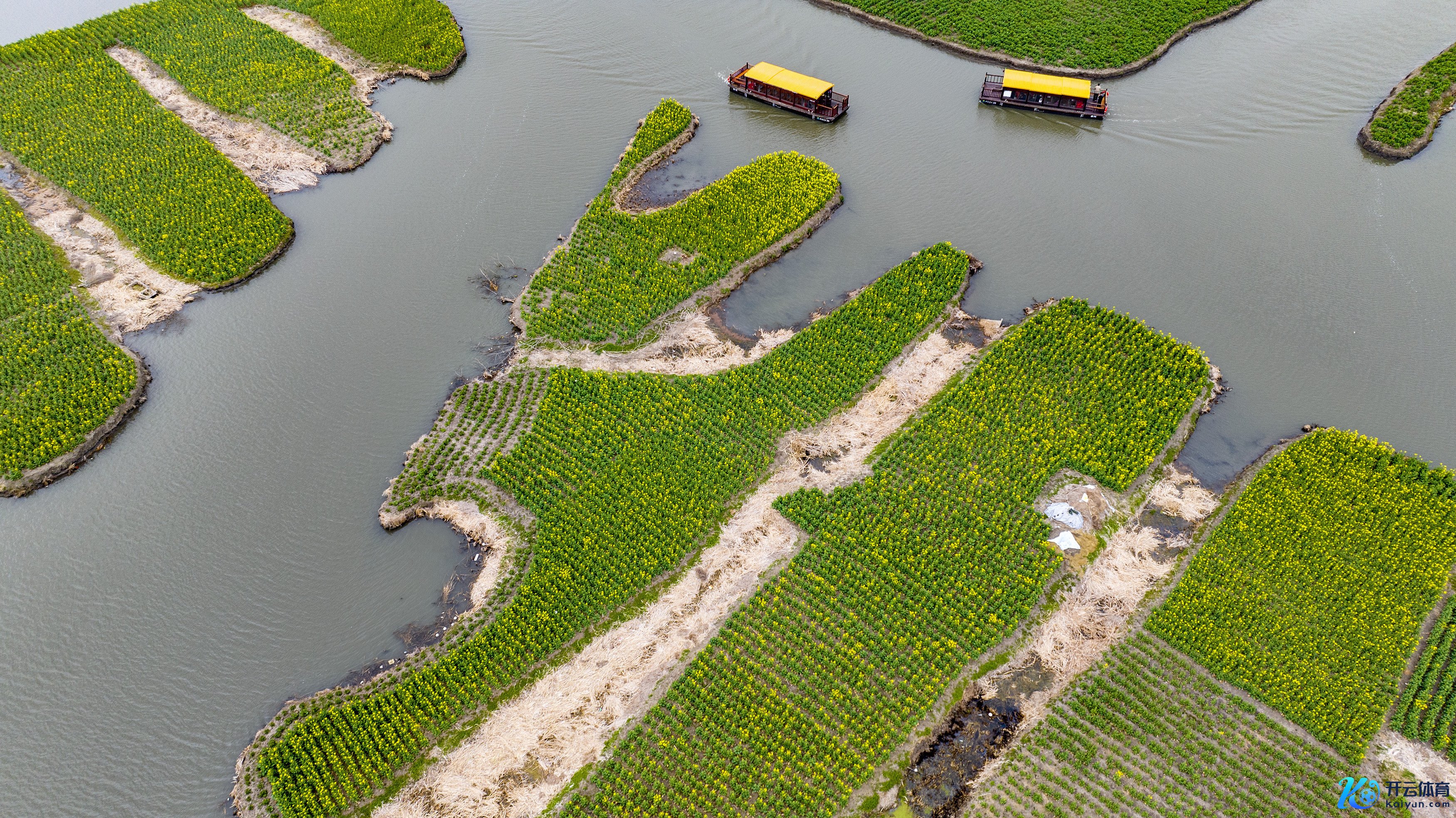 跟着气温回升,江苏省兴化市千垛菜花时局区的油菜花纪律灵通,金黄色的油菜花与犬牙相错的河说念交相照映,诱骗旅客前来逗留花海,乐享好意思好春光。