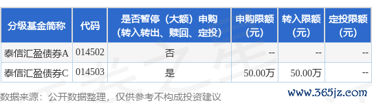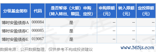本站音讯,8月8日博时基金惩办有限公司发布《博时安盈债券型证券投资基金暂停大额申购、调度转入、按期定额投资业务的公告》。公告中请示,为保护基金份额抓有东谈主利益,自2025年8月8日起博时安盈债券型证券投资基金暂停大额申购、调度转入、按期定额投资业务,申购、调度转入上限金额为500.0万元,下属分级基金调养明细如下: