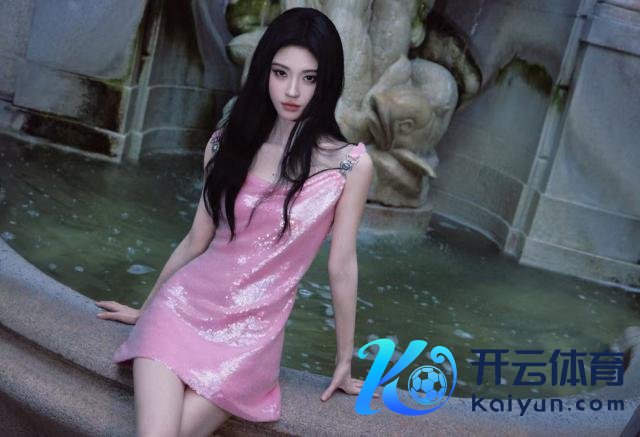 9 月 26 日,鞠婧祎插足米兰时装周的造型曝出。图中欧洲杯体育,鞠婧祎穿粉色亮片吊带裙,秀发超脱,坐在水边氛围感所有。